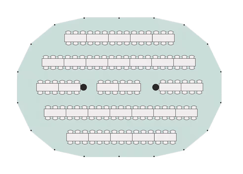 Our Celeste Pole Marquee is a traditional structure with exposed timber legs and rounded ends. We offer it in a variety of sizes and it comes complete with woven matted flooring, LED uplighters and fairy lights throughout.