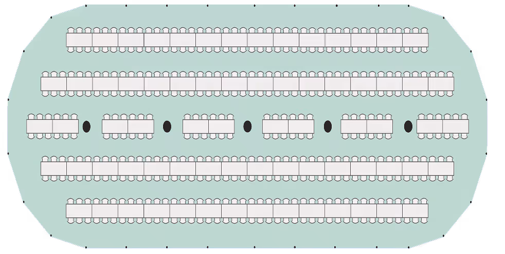 External space needed including guy ropes: 16 x 40m